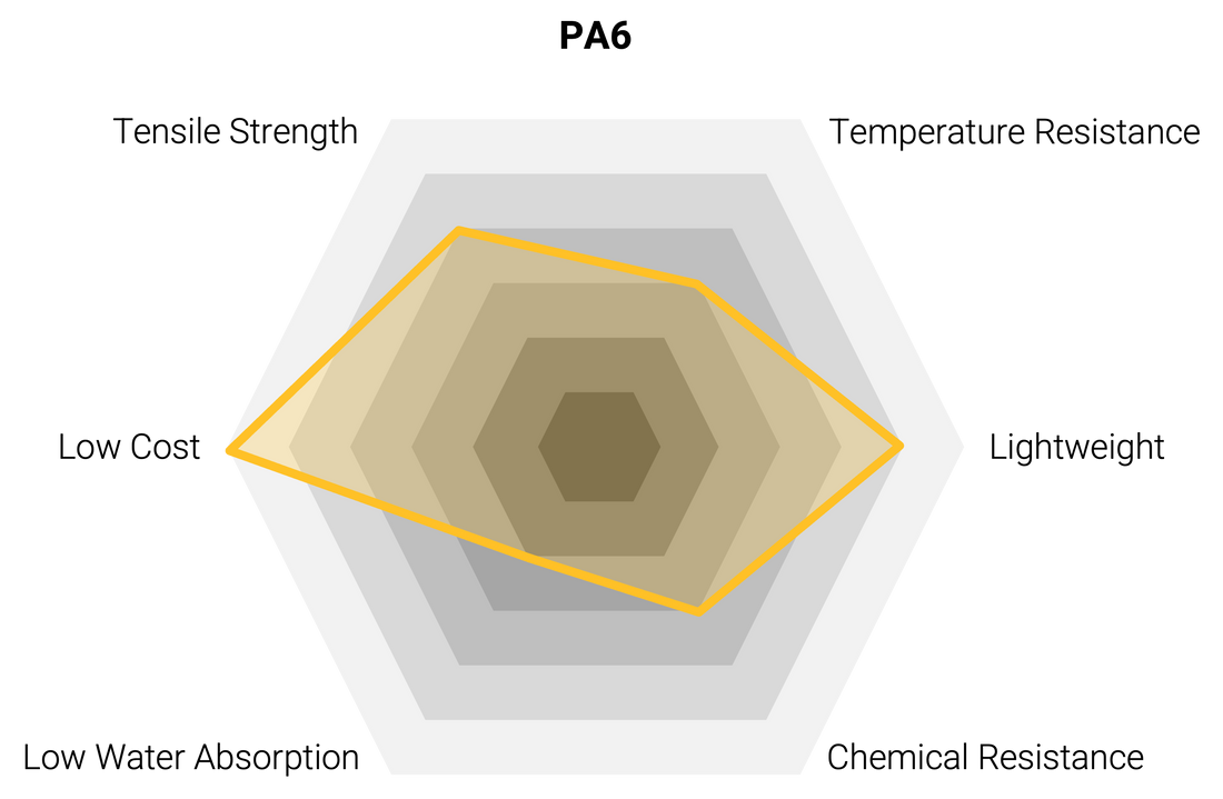 Polyamide 6 (PA6), commonly known as Nylon 6, is a widely used engineering thermoplastic renowned for its excellent mechanical properties, including high tensile strength and toughness. It offers good resistance to heat, chemicals, and moisture, making it suitable for various applications such as automotive parts, electrical components, and consumer goods. PA6 is also valued for its cost-effectiveness and versatility in processing methods like injection molding and extrusion.