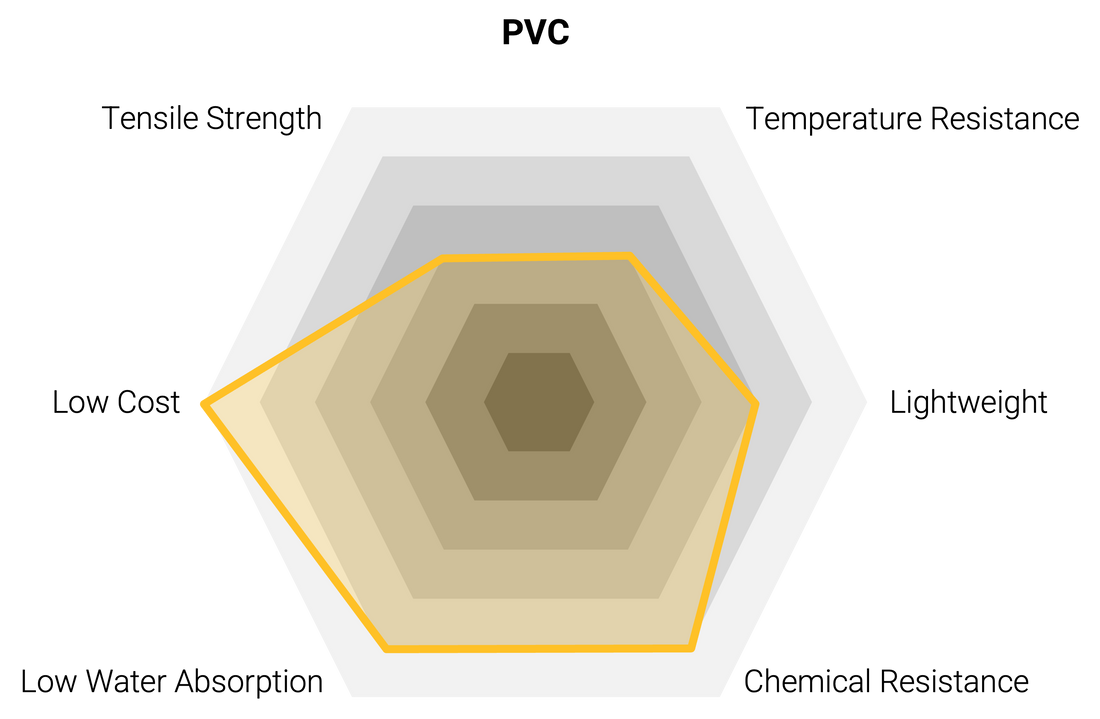Explore the benefits of each material we offer, ready for you to compare and make the best choice for your project! These comparisons include levels of strength, temperature resistance, lightweight, chemical resistance, low water absorption and cost.