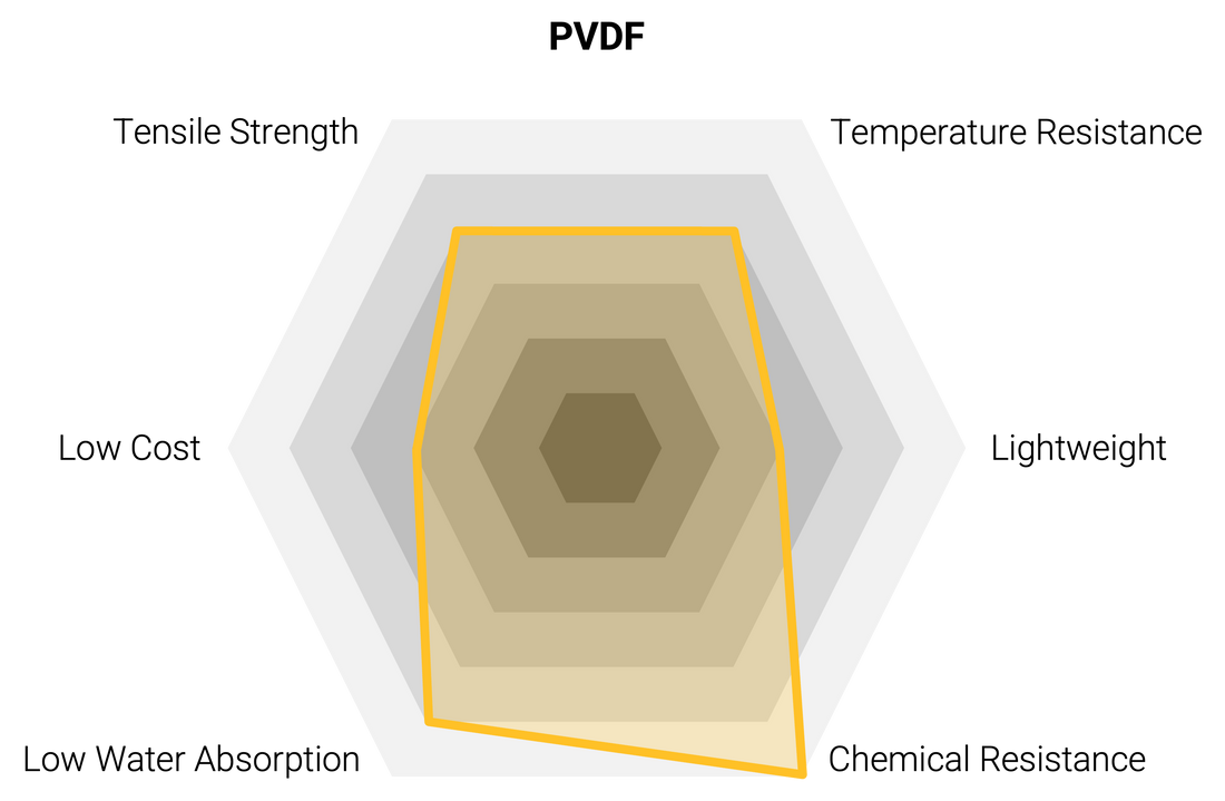 Polyvinylidene Fluoride (PVDF) is a high-performance fluoropolymer known for its exceptional chemical resistance, mechanical strength, and thermal stability. It performs well across a wide temperature range, making it ideal for demanding applications in chemical processing, electronics, and medical devices. PVDF is also valued for its excellent electrical insulation properties and inherent flame resistance. These attributes make it a preferred material for industries requiring durability, high purity, and reliable performance.