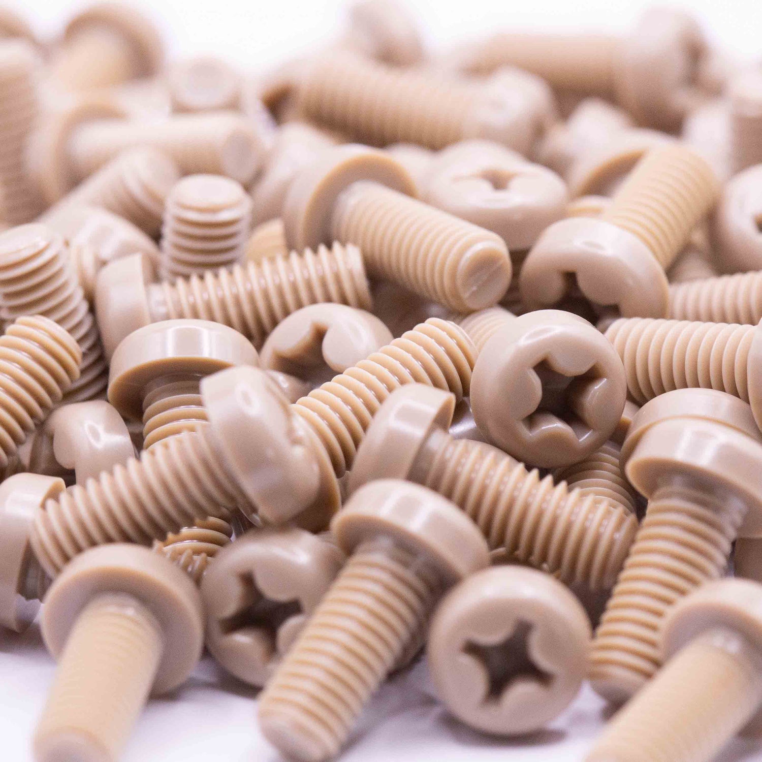 A PEEK más polimer csavarokhoz, például a nejlonhoz és az ABS-hez képest mechanikai képességekben még nagyon magas hőmérsékleten is felülmúlja a PEEK-et.