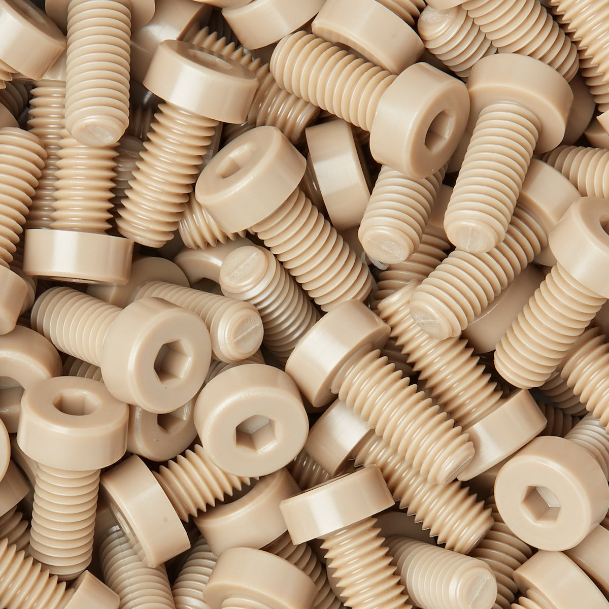 A PEEK alacsony hatszögletű csavarok PEEK anyagból készült csavarok, alacsony hatszögletű fejjel és foglalat meghajtással. Számos olyan alkalmazásban használják őket, ahol a PEEK szilárdságának és kémiai ellenállásának kombinációja kívánatos a foglalat meghajtás kényelmével. Általában nagy teljesítményű és igényes alkalmazásokban használják őket, ahol a hagyományos anyagok esetleg nem megfelelőek.
