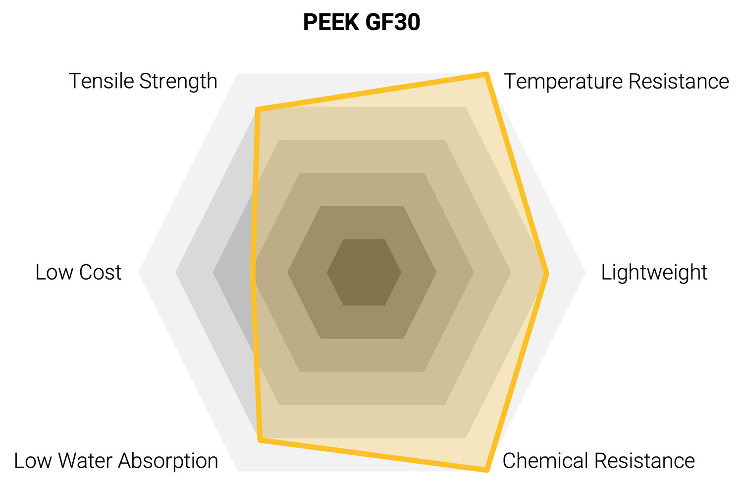 PEEK GF30 Kulcsfontosságú tulajdonságok