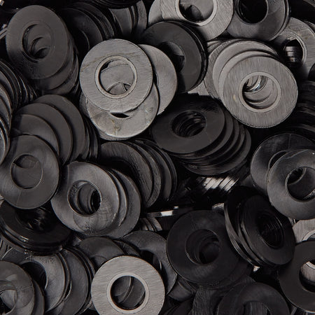 A poliamid (nylon) fekete lapos alátétek olcsóak és tökéletesek általános használatra.