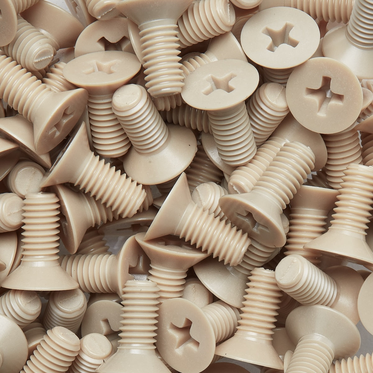A PPS csavarok 40% üvegszállal vannak megerősítve, ami a PEEK GF30 (30% üvegszállal megerősített) termékcsaládunkhoz hasonló szakítószilárdságot tesz lehetővé, azonban sokkal nagyobb méretválasztékkal és alacsonyabb költséggel.