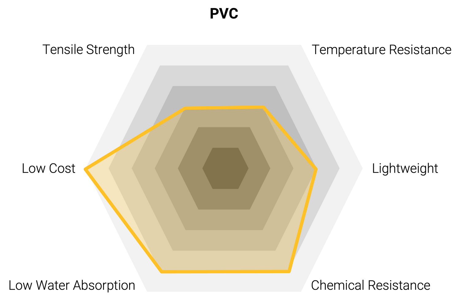 Költséghatékonyság: A PVC egy költséghatékony polimer, ami vonzó választássá teszi olyan alkalmazásokban, ahol a költségvetési korlátok szempontot jelentenek.