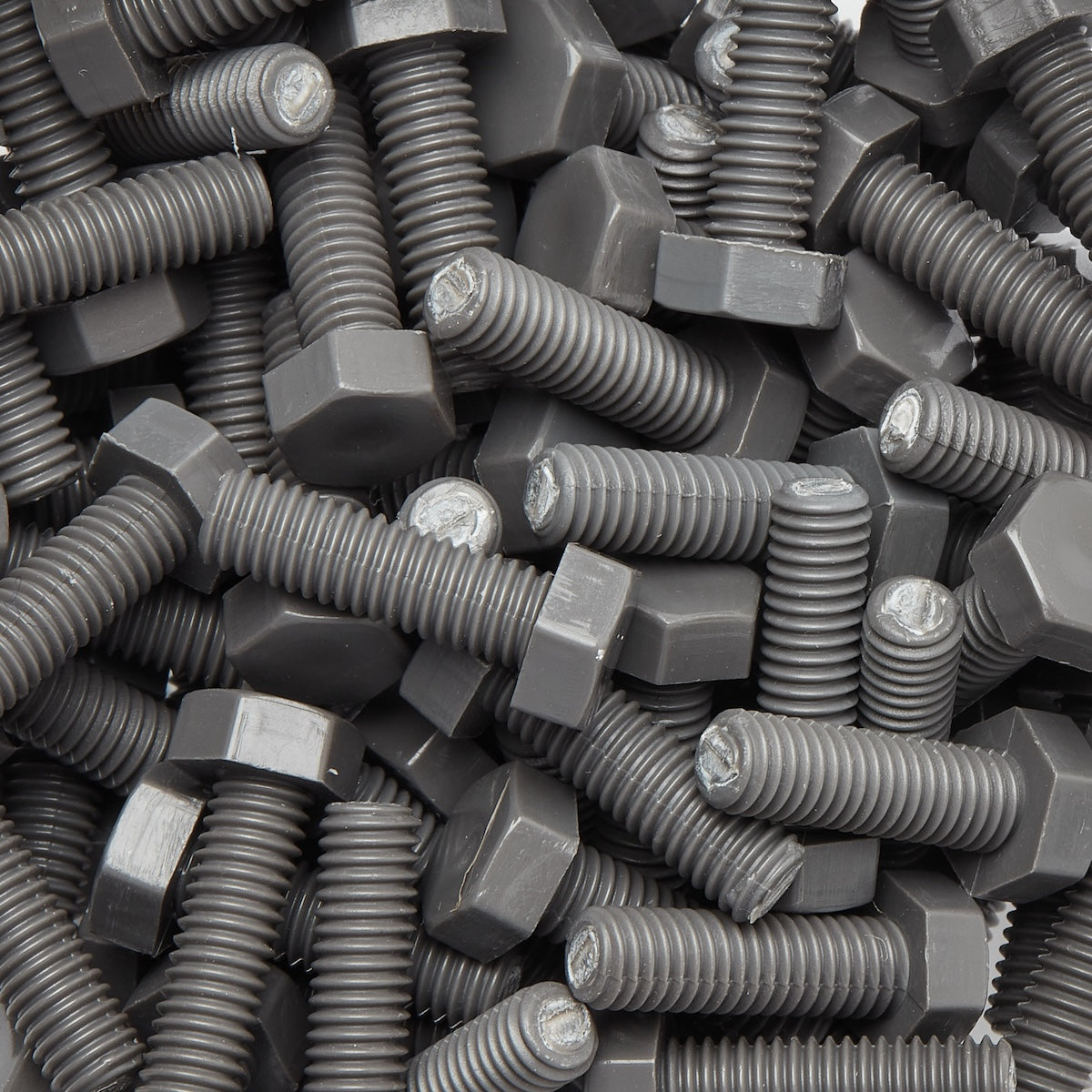 A PVC kivételes tartóssággal és vegyi ellenállással, valamint magas UV-állósággal rendelkezik (még hosszabb ideig tartó külső használat esetén is). Ezek a tulajdonságok teszik a PVC hatszögletű csavarokat tökéletesen alkalmassá az építőiparban való felhasználásra.