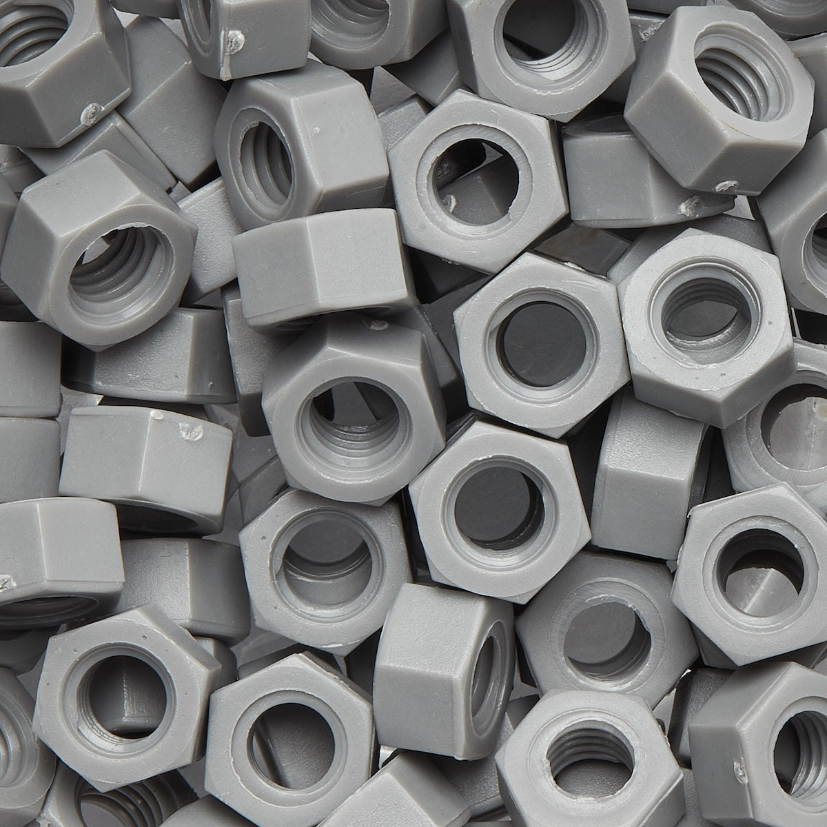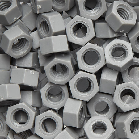 PVC hatszögletű anyáink a DIN 934-es specifikációnak megfelelően reklamáltak. Javasoljuk, hogy hatszögletű anyáinkat PEEK lapos alátétekkel párosítsuk, hogy a rögzítőelem vagy az alkatrész ne sérüljön meg a meghúzáskor.