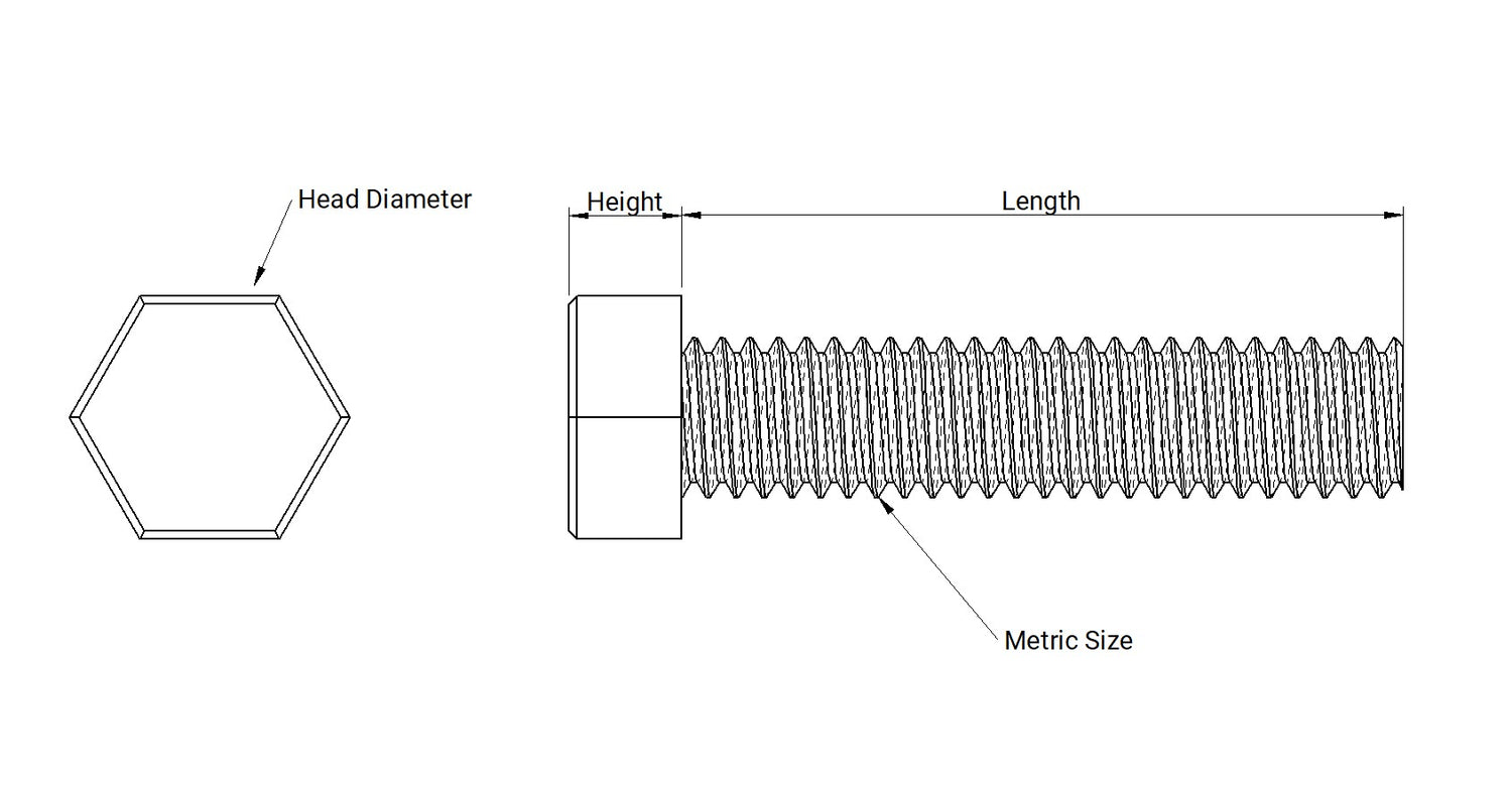 A hatszögfejű csavarjaink szabványos hatszögletű meghajtással rendelkeznek, amely metrikus kulcsokkal vagy dugókulcsokkal használható (a méretek a fenti táblázatban szerepelnek).